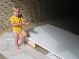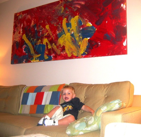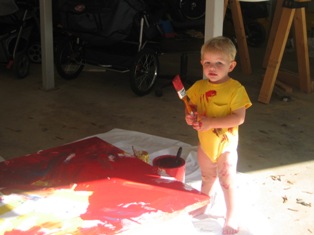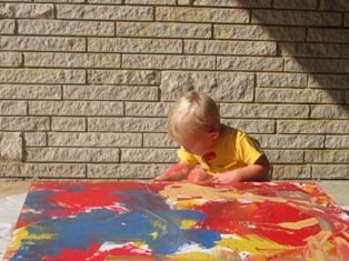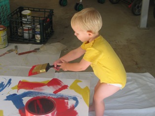 Daddy helped me make a painting for Mommy's Birthday. He let me do all the painting.It was a lot of fun. I got paint all over me, and had to take a bath.